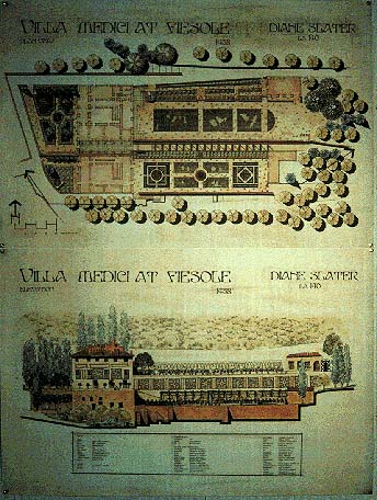 Drawing by Diane Slater, Villa Medici at Fiesole, frequentemente individuato come prototipo del giardino di villa