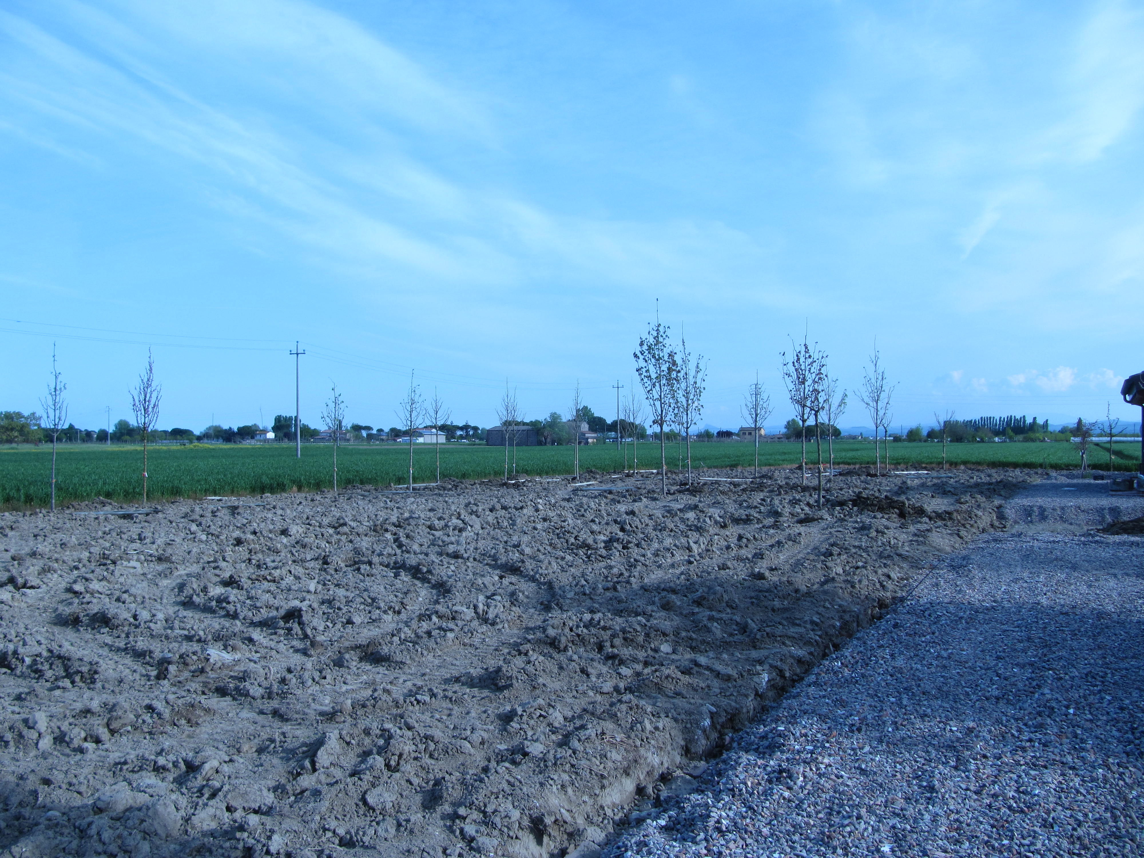 Una volta realizzati i percorsi, per ragioni legate alla stagione, sono state posta a dimore le piante arboree, sulla base delle indicazioni progettuali.